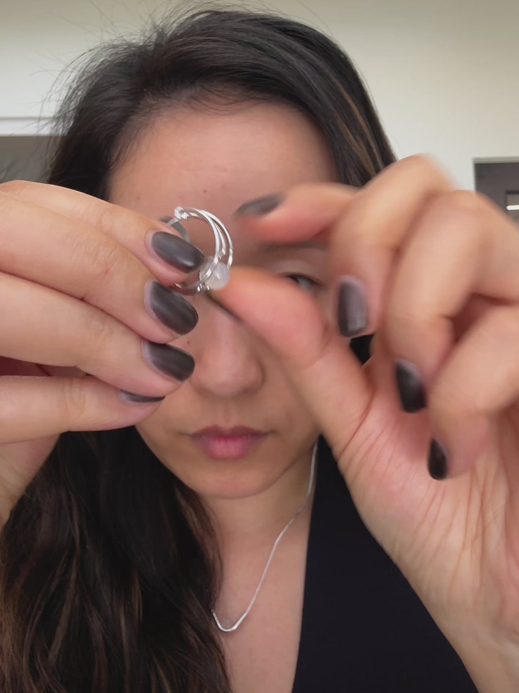 A backless hoop cradling a translucent white jade orb. Inspired by the soft glow of modern pendant lighting.