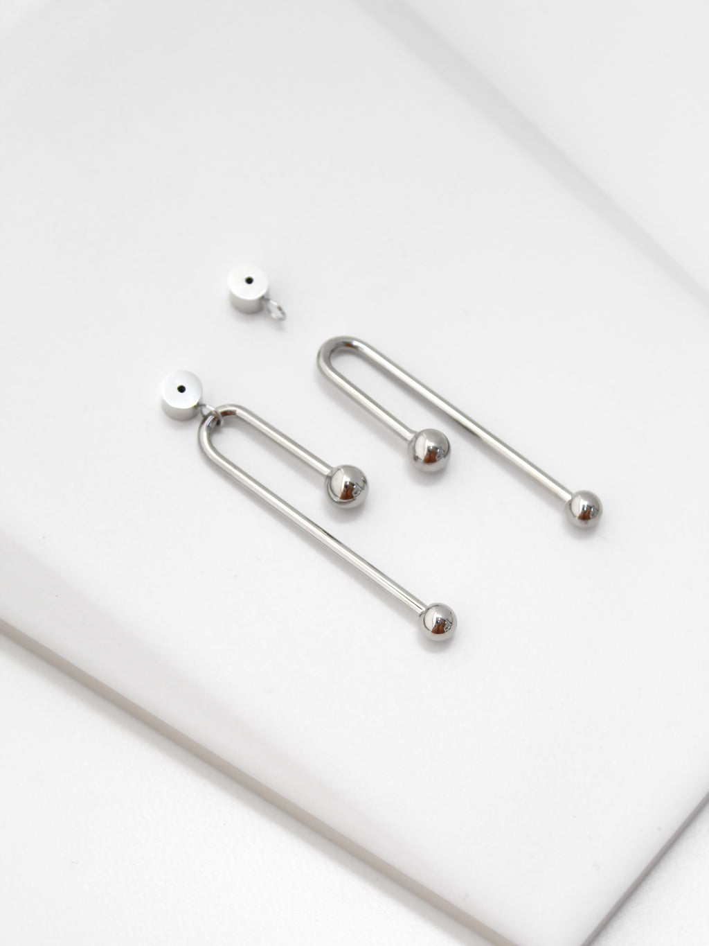 A sculptural drop pairing designed to sit just below the lobe. Includes charms and adapters for effortless ear jacket styling.